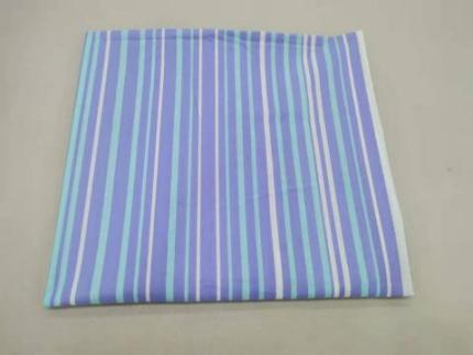 3)枕套。规格:48cm×74cm;面料为蓝白色条纹纯棉染色平纹布,花色和颜色与 床单一样。线密度经向 18.0*纬向 18.0;密度 268*268 根/10cm;断裂强力经向 300*纬 向 300N;水洗尺寸变化率符合;耐洗、耐磨擦色牢度符合;甲醛、PH 值、异味均符合。